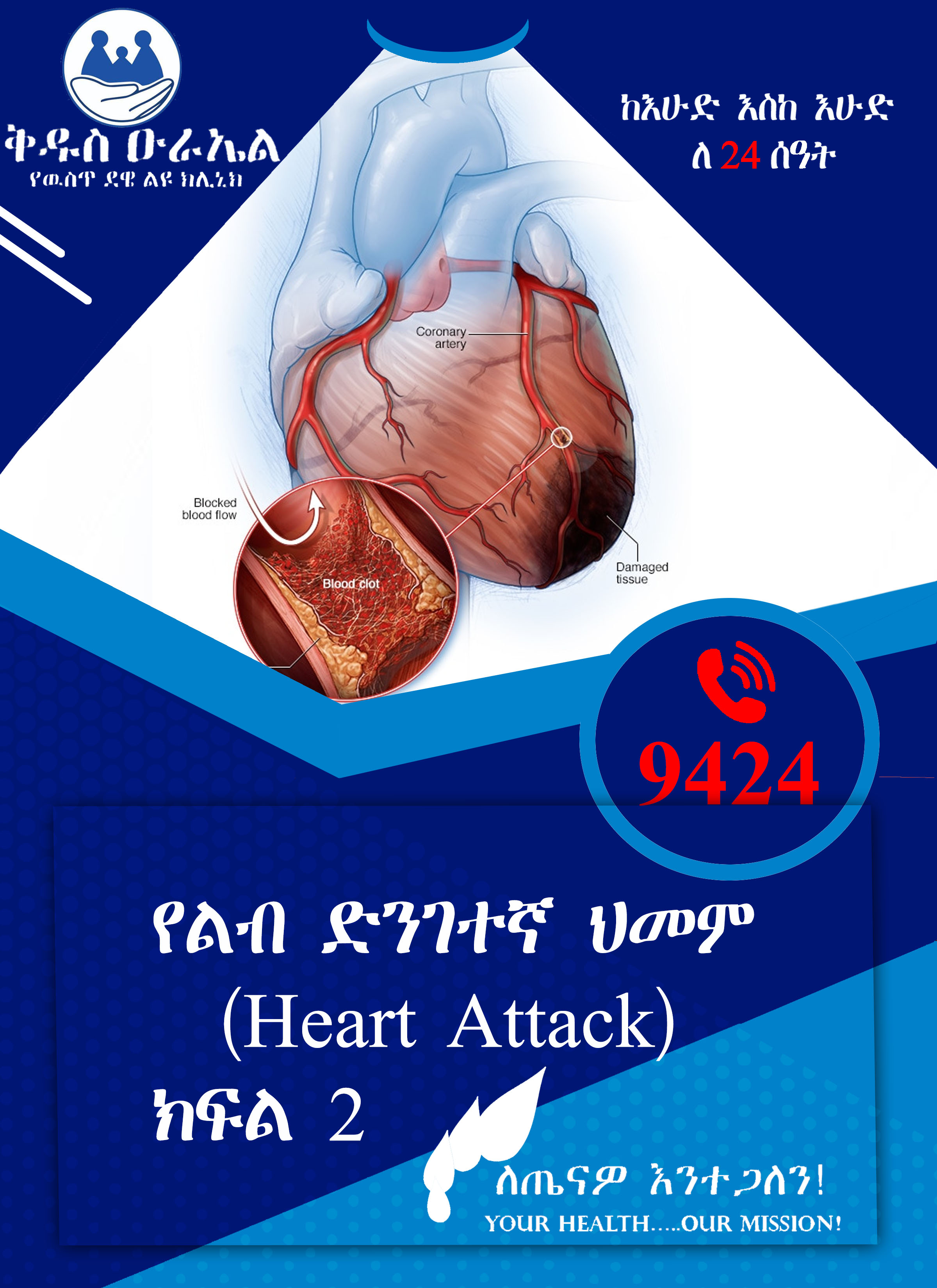 ክፍል ሁለትየልብ ድካም ምልክት ከታየብዎ የህክምና ባለሙያዎን ያማክሩ...